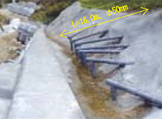 路側ブロック法面変状を抑制するため、路側ブロック法面に「鉄筋挿入工」を実施しました。